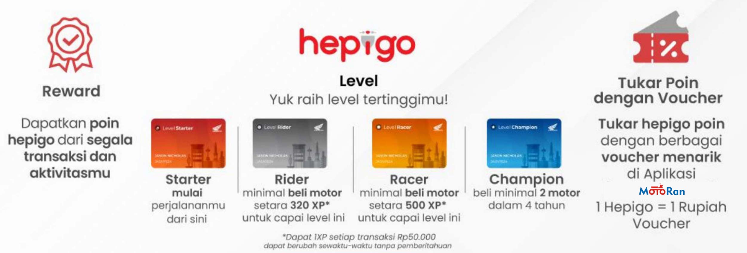 Hepigo poin dapat dapat ditukarkan dengan voucher menarik di Aplikasi MOTORAN